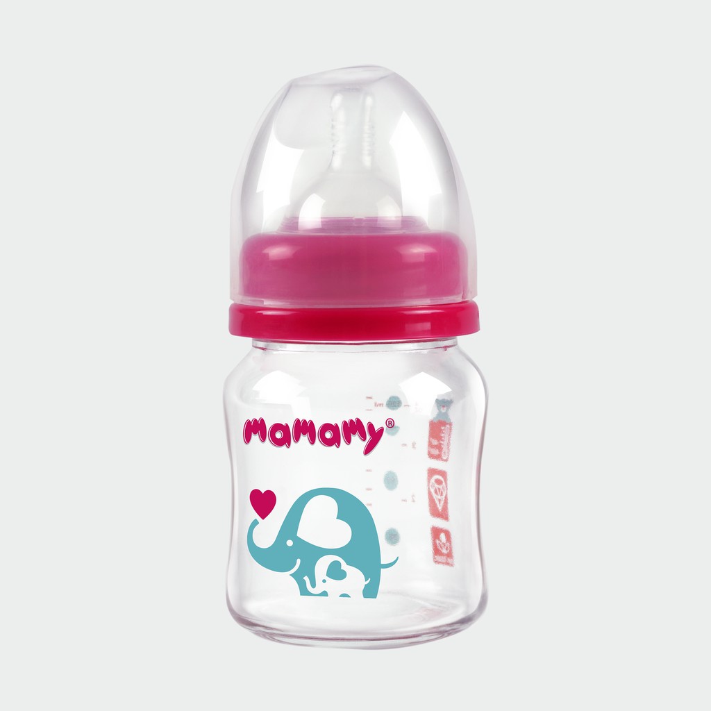 [Mã MKBCFS50K hoàn 15K xu đơn 150K] Bình sữa thủy tinh cổ rộng chống sặc, chống đầy hơi cho bé Mamamy 120ml